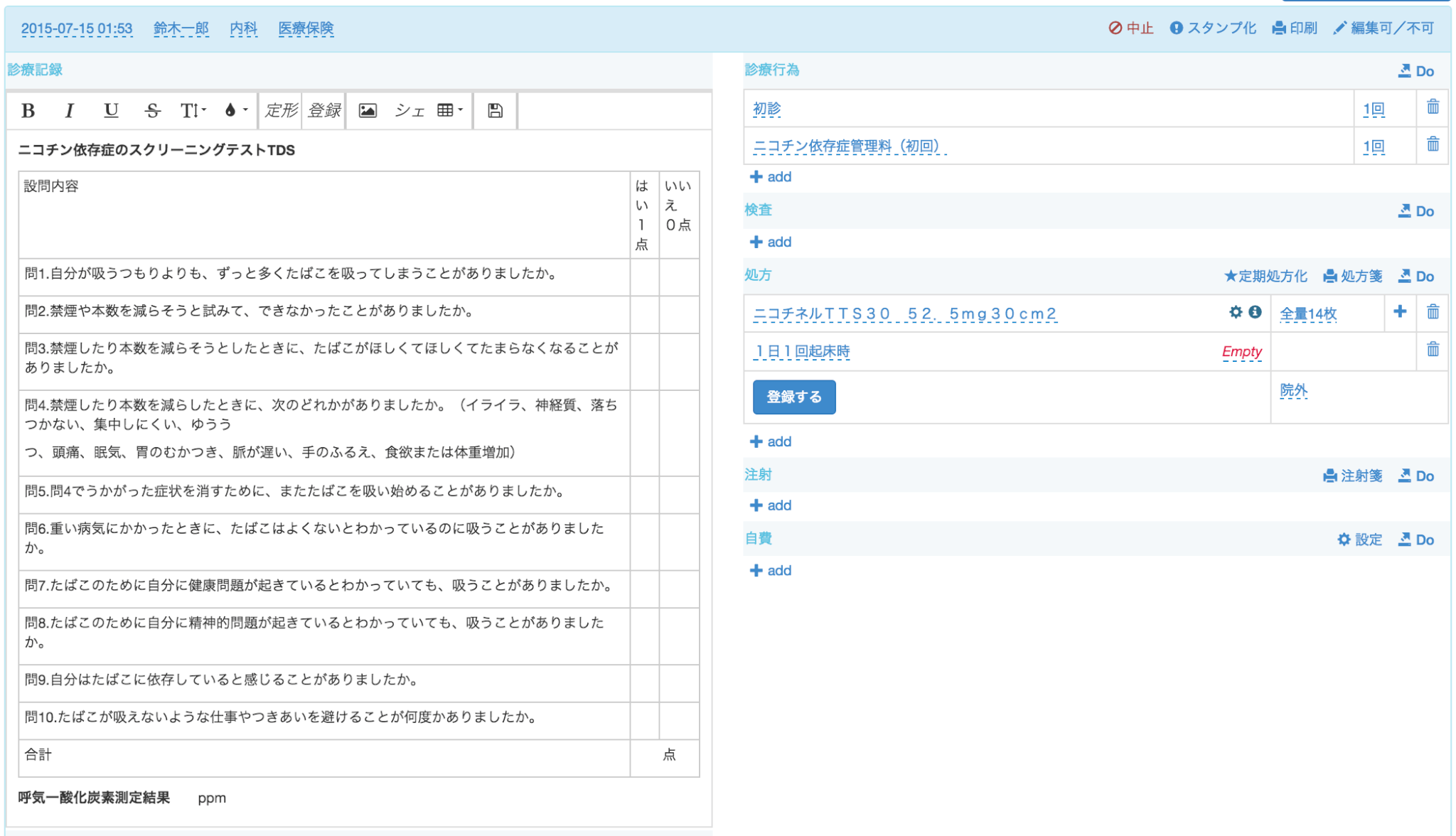 これで、オーダー忘れを防ぐことができますし、カルテの記載効率がアップします。