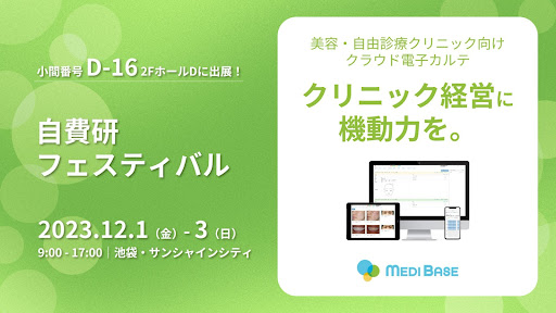 美容・自由診療クリニック向けクラウド型電子カルテ「MEDIBASE」、「自費研フェスティバル2023」出展